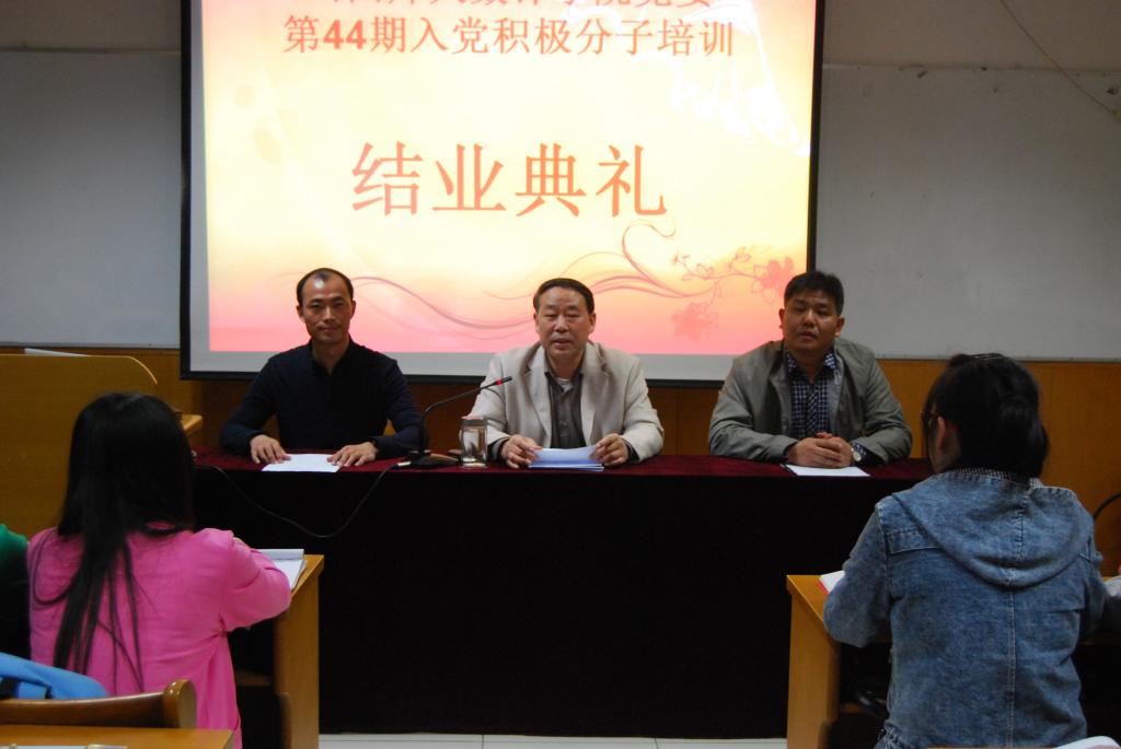 4月20日晚七点,EMC易倍在科学会堂A710举办第44期入党积极分子培训班结业典礼。公司党委书记王成喜,公司党委副书记、学工组组长张珂,院团委书记陈立记及全体入党积极分子参加了这次结业典礼。典礼由陈立记老师主持。