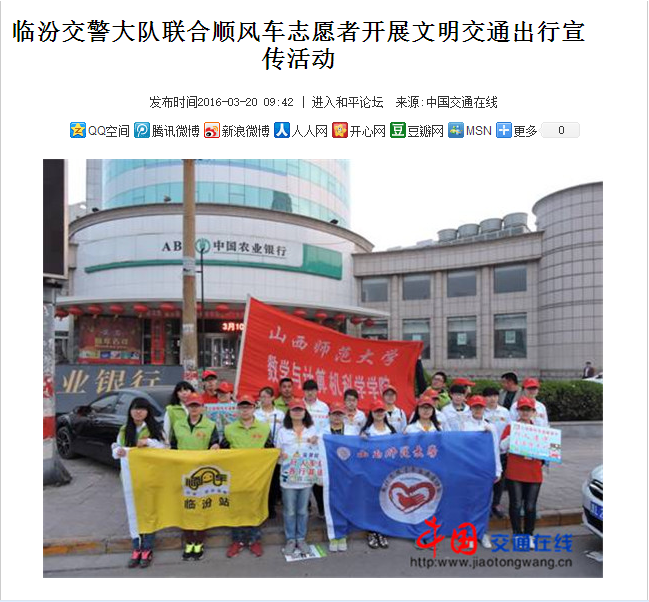 志愿者们以实际行动,倡导社会文明新风,与广大市民共同营造良好的交通文明秩序,加强了同学们对宣传交通知识的重视,与此同时,也增强了更多出行的人对于交通安全的认知,使“交通诚重要,生命价更高”的意识根深蒂固。为营造有序、安全、文明、和谐的道路交通环境贡献自己的一份力量,并赢得临汾交通大队的赞赏。