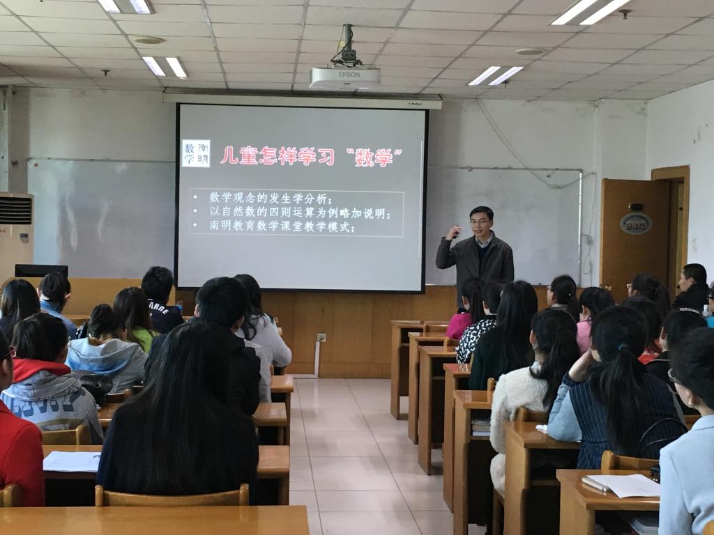 运城国际公司,是由山西省运城新教育集团投资兴建,并委托北京南明教育咨询有限公司全权管理的一所全日制私立公司。宣讲会上,王志江董事长首先介绍运城国际公司成熟的课程体系以及独具特色的办学理念。并结合小学数学的特点,为同学们举例讲授了科学、系统地数学教学模式。该校教学模式有别于传统教学,更注重于挖掘儿童的先天潜能,利用多种灵活有趣的教学方法,启蒙和培养儿童的数学思维。整场宣讲会,同学们和王志江董事长积极踊跃的互动,气氛活跃融洽。