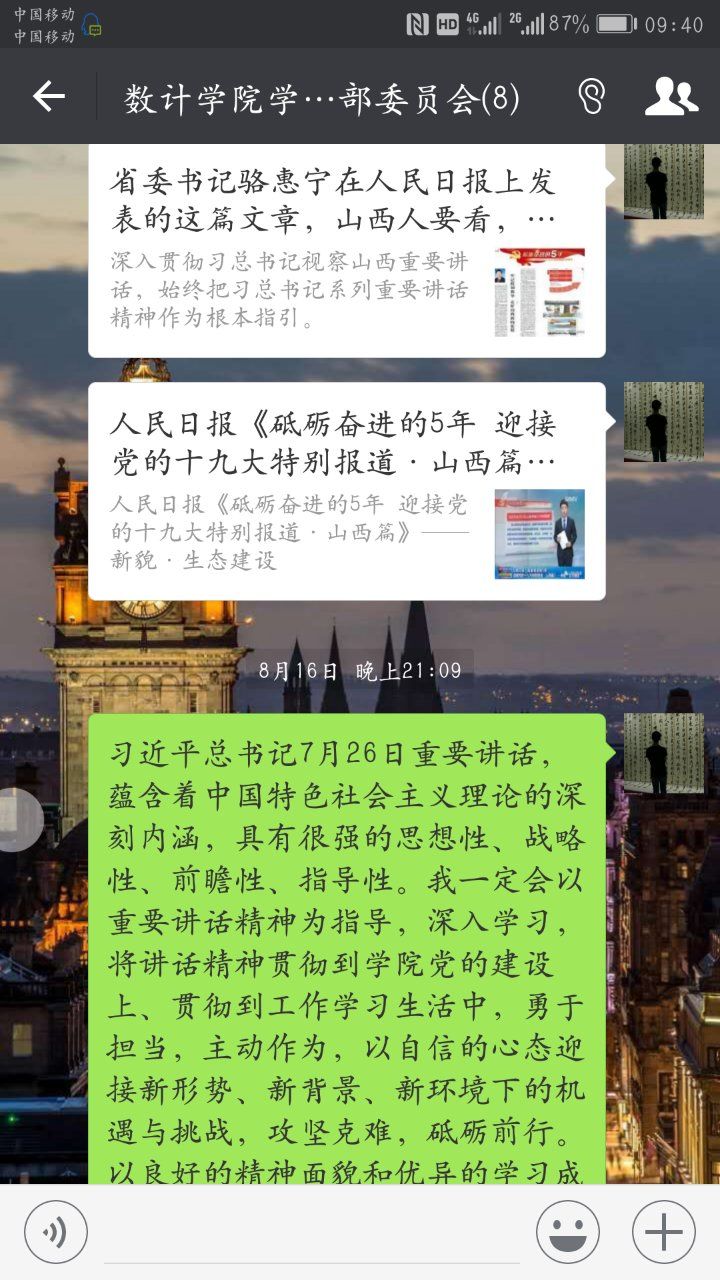 按照校院两级中心组联合学习会议的部署要求,公司党委组织全体党员,于8月15日至20日,利用微信平台等新媒体,开展了深入学习习近平总书记视察山西和“7·26”重要讲话精神的主题教育,纵深推进公司维护核心、见诸行动主题教育实践,强化学用结合,稳步推进公司各项工作。