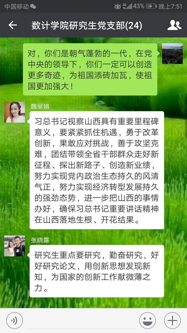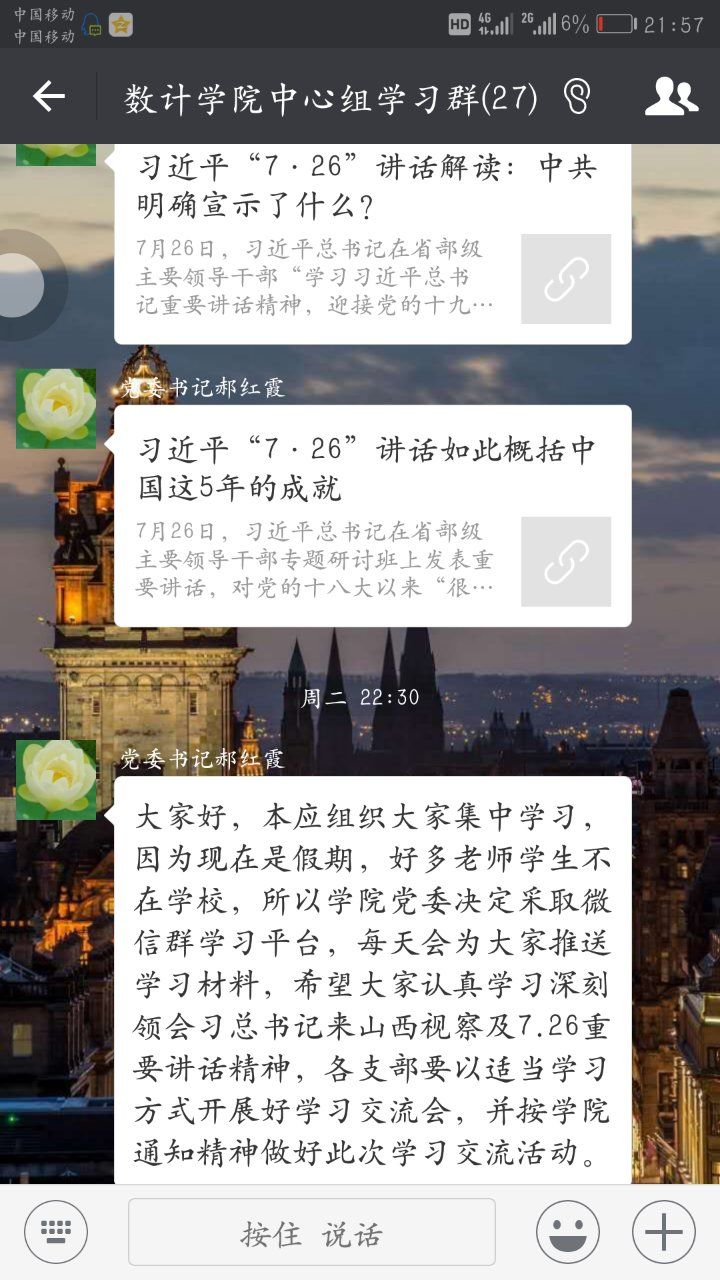 公司党委通过EMC易倍中心组微信学习群和各党支部微信群,每天推送学习专题,党员干部带头对讲话精神进行深入解读,交流学习心得。各党支部书记主持开展本支部的学习交流会,每位党员结合自身的工作和实际,在群里谈心得,讲体会。大家一致表示,要自觉维护以习近平同志为核心的党中央的权威,牢固树立“四个意识”,不断增强“四个自信”,要把讲话精神融入到教学科研、人才培养的各项工作中,落实到行动上。