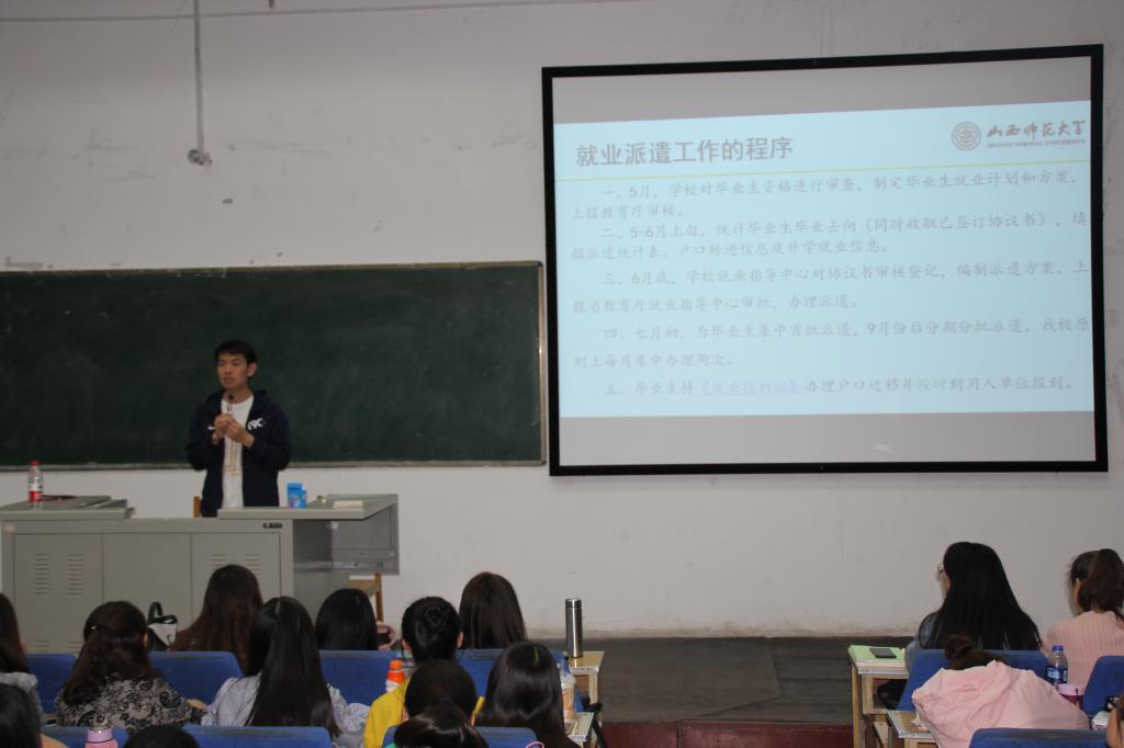 在紧接着召开的年级会议上,杨亚东就4月份重点工作就业创业系列活动进行了安排。就业创业系列活动共有6项,以就业指导会为首场活动,本月将相继开展教学实践成果展、考研经验分享会、研究生考博求职经验分享会、考取国家公务员经验分享会、公费师范生成长之路报告会,目的在于分享经验、交流信息,同时鼓舞信心,凝练品牌。