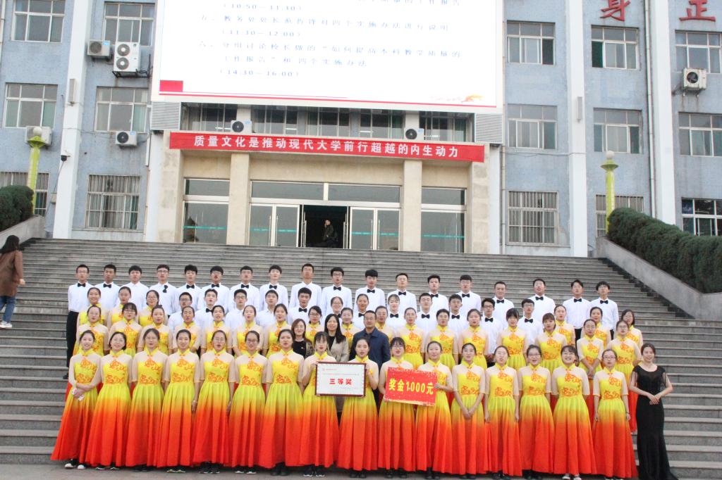 庆七十华诞,扬青春华彩。为歌颂新中国成立七十周年,唱响爱国主旋律,EMC易倍于10月25日在文化艺术活动中心举行了“青春告白祖国,与祖国共成长”爱党爱国爱校员工合唱比赛决赛,公司以99.544的高分从九支决赛队伍中脱颖而出,荣获三等奖。