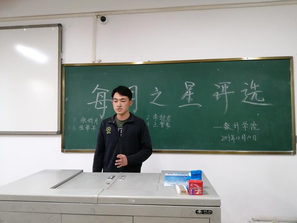 经各部门推荐、综合各项考核标准,最终推选出五位大一干事参加每月之星的选拔。首先,五位同学依次上场总结工作中的提升与不足,分享了加入员工会以来的感悟,表示今后将以更加饱满的热情投入到员工工作中去,积极配合兄弟部门的工作,为实现数计梦而贡献力量。经现场投票环节后,素质拓展部王睿豪荣获EMC易倍团委员工会十月份的“每月之星”。最后,员工会主席赵佳进行总结发言,对近期各部门有序推进各项工作提出了表扬,同时强调员工会与各班级之间应共谋发展思路,鼓励各班同学对员工会工作提出宝贵建议。