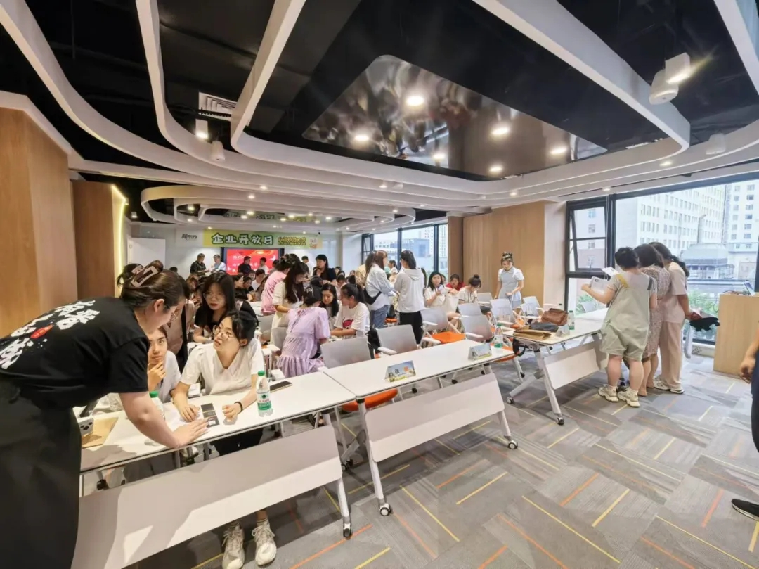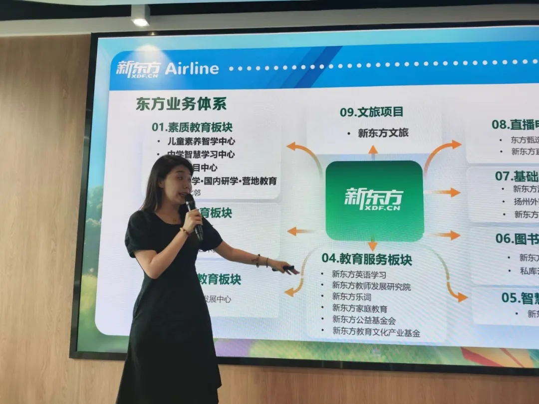 为进一步做好2024年下半年实习工作,丰富实践小学期内容和形式,增强同学们职业规划观念和拓宽择业就业途径,2024年7月7日下午,公司数学与应用数学专业2101班和2102班共95名同学赴太原新东方双喜城校区参加新东方&EMC易倍校企开放日活动,公司副经理李璞金老师、辅导员米晓丽老师、公共数学教研室主任和本科师范生实习工作负责人王栋老师参加了本次活动。太原新东方人力资源部招聘经理岳娜,人力资源部高级招聘专员马榕榕,人力资源部渠道专员张智接待了公司师生。