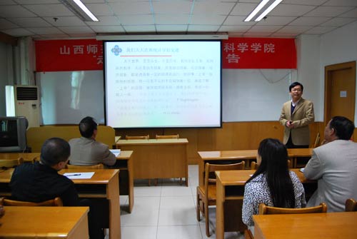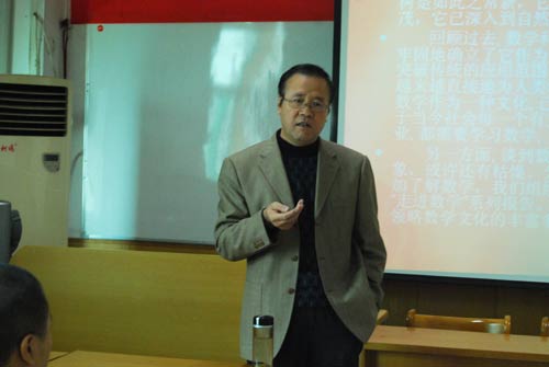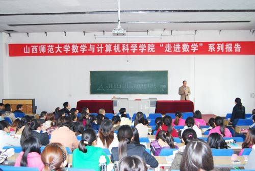 10月27日下午和10月28日上午,"走进数学"系列的第二场至第九场报告在科学会堂A710报告厅举行。报告题目分别是任辛喜副教授的"飞鸟与青蛙——两种不同风格的数学家"、王国涛讲师的"从1/2阶导数谈起"、王虹教授的"生活中的模糊性与数学"、孙树林副教授的"生命与数学"、史建红教授的"生活中的统计"、赵连阔副教授的"从有限到无限"、王翠红副教授的"嫦娥奔月中的数学"和张勤海教授的"对称与群"。八位教师以诙谐幽默的讲授方式,深入浅出地向全院教师介绍了他们的研究领域、研究方法以及自己对数学深刻独到的见解。