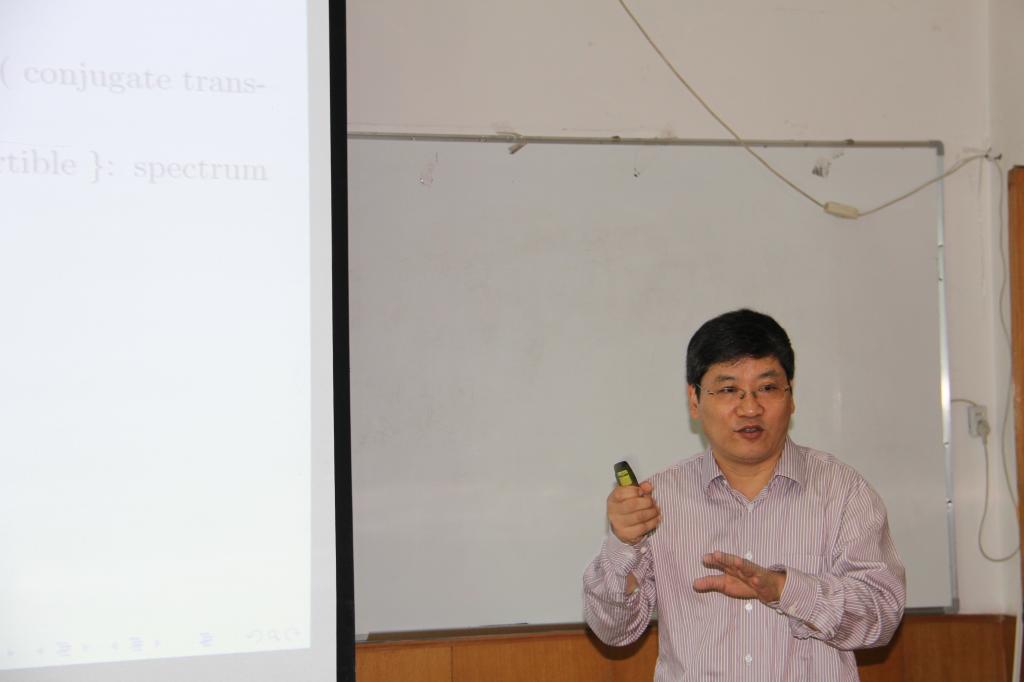 吉国兴教授,陕西师范大学数学与信息科学公司经理,1998年3月毕业于日本新潟大学,获博士学位,主要从事算子理论与算子代数研究,先后主持完成3项国家自然科学基金,1项教育部优秀青年教团队助计划和1项教育部博士点专项基金。主持完成的课题《非自伴算子代数及相关问题研究》曾获2005年陕西省科学技术二等奖。此次报告吉国兴教授从阅读文献开始,着重为大家展示了数学研究中发现问题、思考问题、解决问题的过程。报告结束后,吉教授与师生们进行了现场交流,针对员工们提出的问题进行了详细的解答。吉教授的报告激发了大家学术热情,使大家收获颇丰。