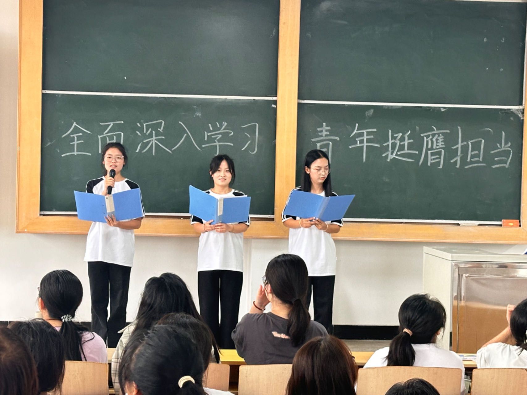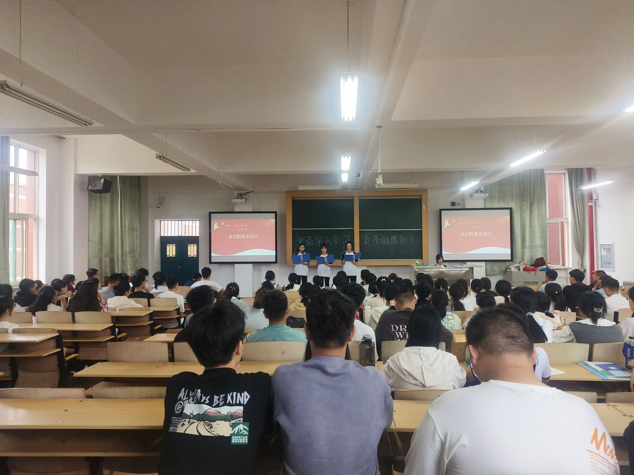 宣讲团成员从党的二十届三中全会的基本情况入手,深入浅出地解读了习近平总书记重要讲话精神,全面准确地把握了《决定》提出的重大举措,更以“改革有召唤,青年有担当”的时代强音,激发了学子们内心的使命感与责任感。在宣讲团的带领下,同学们深刻领悟了党的艰苦卓绝的奋斗历程与创新时代精神,五四精神的火种在心中熊熊燃烧。接着,通过一段以“进一步全面深化改革的重要性和必然性”为主题的视频,将党的二十届三中全会精神生动展现。在视频的引领下,同学们仿佛穿越时空,亲历了中国共产党那段波澜壮阔的历史,感受到了党在新时代的创新与变革。宣讲会的最后,宣讲团成员带领同学们深情回顾了校史与院史,让学子们在历史的长河中,找到了自己的位置。宣讲团与学子们一起,用铿锵有力的誓言进行宣誓,传承和发扬了党的二十届三中全会精神,让青春的热血在推进强国建设、民族复兴的伟业中沸腾。