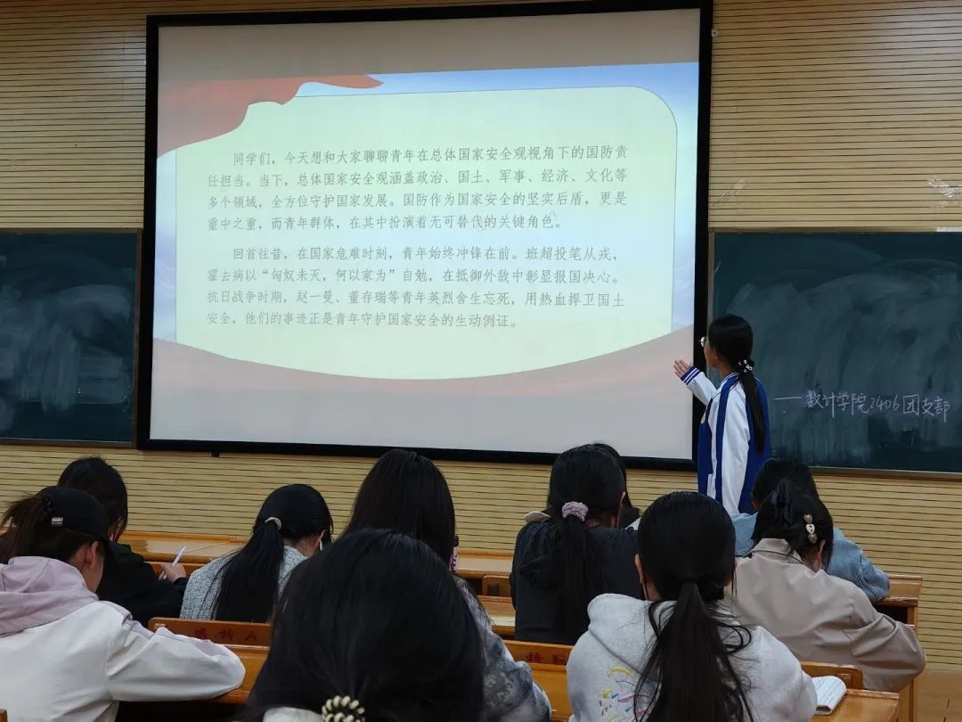 2302团支部围绕“如何坚持总体国家安全观”这一议题,组织团员开展主题演讲,引导团员明确自身在国家安全大局中的重要角色与使命。2305团支部组织阅读《总体国家安全观学习纲要》,深入领会“十个坚持”的核心要义,激励团员们在学习和生活中自觉维护国家安全,用实际行动展现新时代青年的责任与担当。