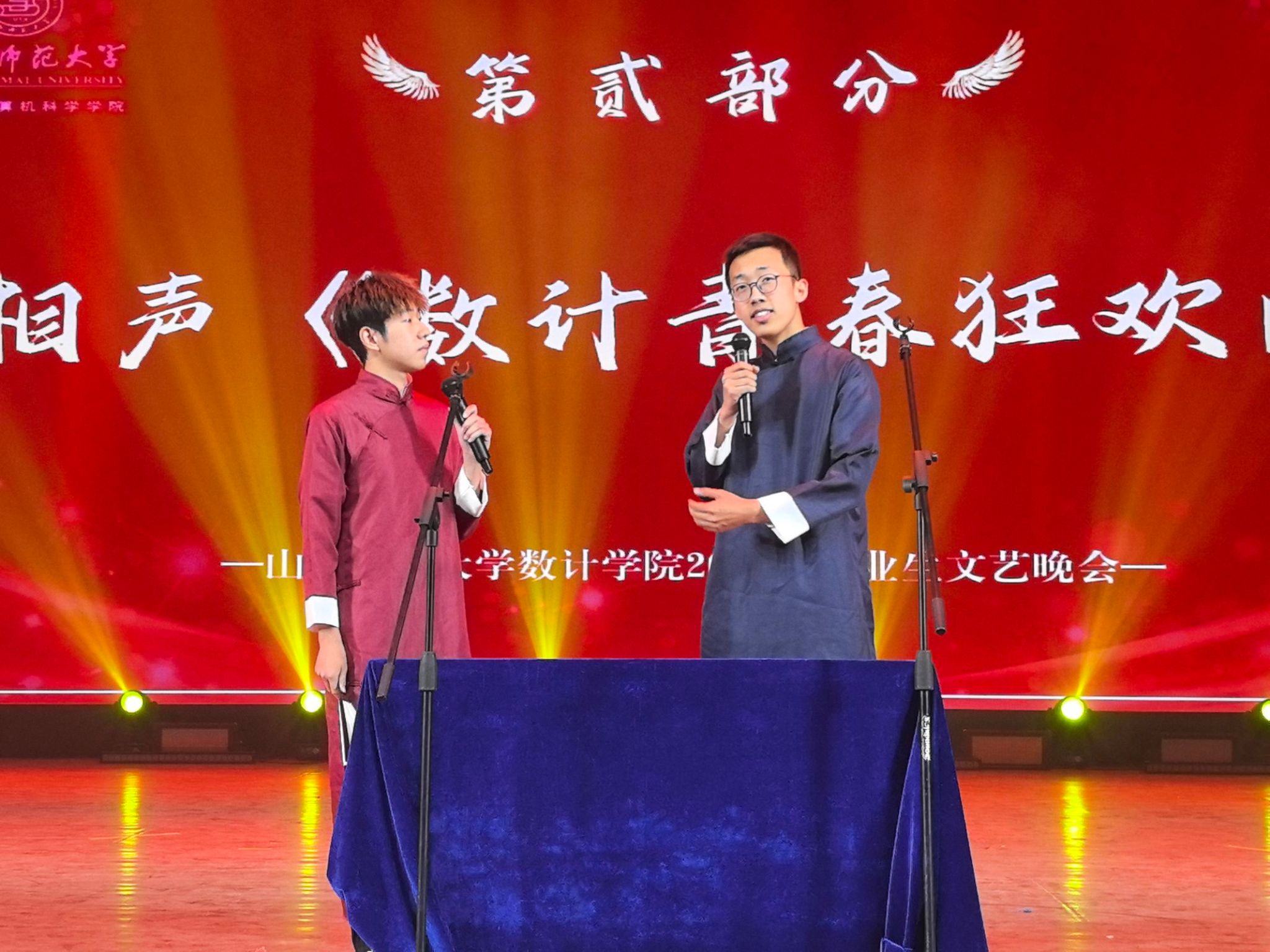 晚会节目形式多样,舞蹈、歌曲、朗诵、乐队演奏等节目精彩纷呈。毕业生辅导员们深情朗诵《守望者的告白》,字里行间满是对毕业生的期许与不舍;舞蹈《寄明月》用柔美的动作,尽显古典与青春融合之美;音乐公司张佳辉同学带来的竹笛独奏《上》带领大家步入清新雅致之境;哑春乐队的节目《春风十里》带动了全场的热情;安立坚经理带来的经典歌曲《海阔天空》则直接将晚会推入高潮,现场掌声和欢呼声此起彼伏。