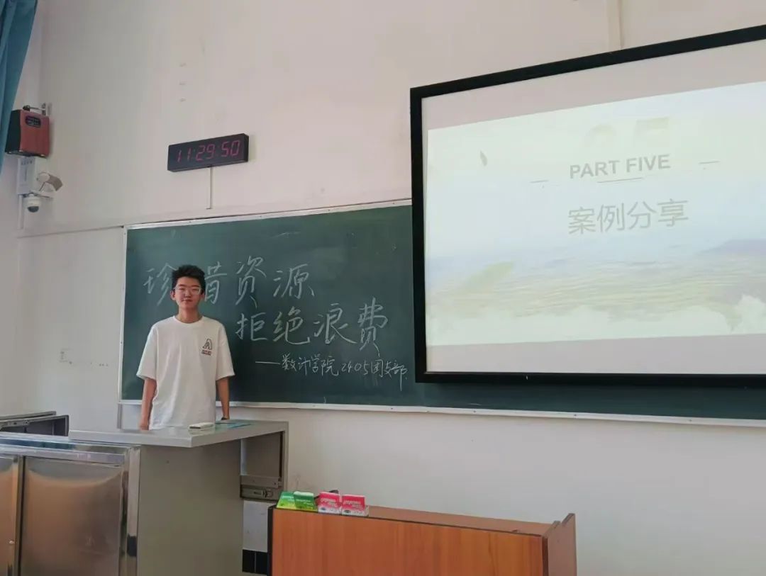 各团支部在此次团日活动中开展了形式多样的活动:2302团支部组织各团小组开展勤俭节约主题书法创作活动,团员们以笔传意,用遒劲有力的字迹书写对节约美德的尊崇,让传统书法艺术成为传承节约精神的载体;2304团支部组织阅读《粮食节约和反食品浪费行动方案》,激发了团员们对国家粮食政策的关注与思考,进一步坚定了他们在日常生活中厉行节约的决心。