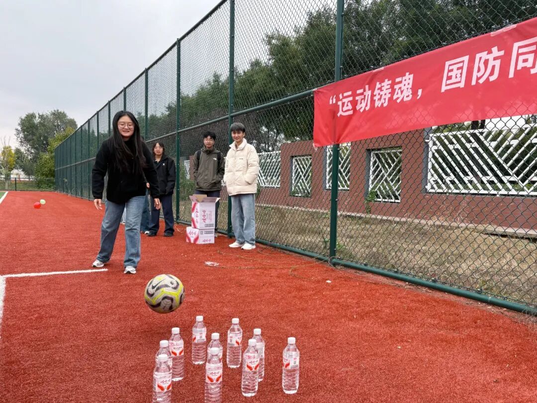 活动共设六个项目,分别为“精准传讯”颠球赛、“战地破障”保龄篮球赛、“战地投送”百发百中赛、“协同转移”背靠背运球接力赛、“四渡赤水”吹球过河赛和“战地急行军”两人三足赛。各项目设计巧妙,既有竞技性,又富含团队协作与战术配合,呼应国防主题,激发同学们的参与热情。